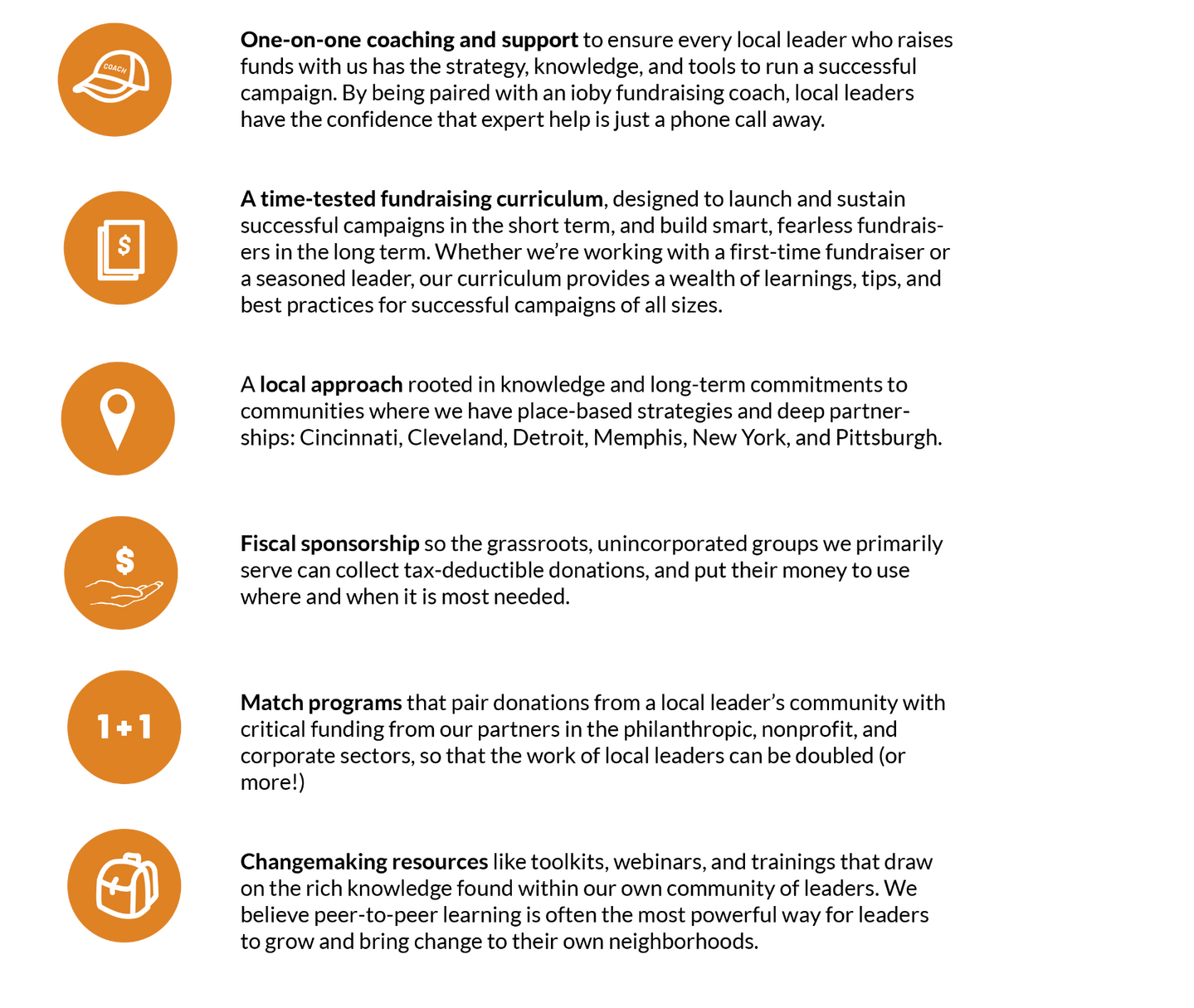 So far, neighbors have raised $16.3 million for 3,164 projects using ioby’s platform and services. That’s a lot of positive, local change. But what does it mean to work with ioby?Since our founding in 2008, we’ve built our online tools and support services on the belief that crowdfunding can be a powerful tool to put money into the hands of community leaders who are best positioned to make positive, local change. But ioby is so much more than a crowdfunding platform: for years, we’ve listened to the communities we serve, and have grown services that can magnify these leaders’ impact beyond the dollars they raise. We offer: