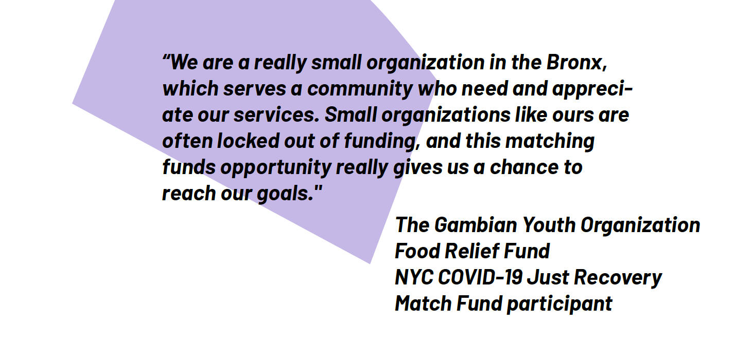 In response to the shifting challenges of COVID-19, in 2021 ioby launched new and expanded rounds of COVID-19 focused match programs, with support from our partners, that were able to get timely, right-sized funds into communities to support critical community response and recovery efforts.